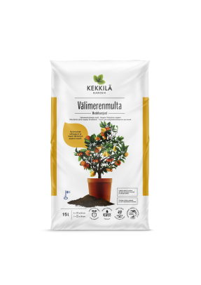 Kekkilä Viherkasvimulta on myös oiva valinta. Sen sekaan voi laittaa lisäksi Kekkilä Hortensiamultaa, sillä hieman hapan kasvualusta on sitruksien mieleen.